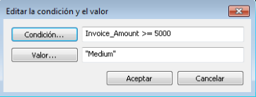 Los valores condicionales se configuran como pares de condición-valor. Si un registro cumple la Condición, el campo calculado utiliza el Valor especificado.