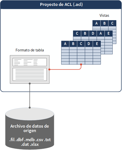 El siguiente diagrama ilustra las vistas en relación con los otros componentes de una tabla de Analytics.