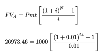 FVANNUITY( ) 26973.46 を返す: FVANNUITY(0.01, 24, 1000) |