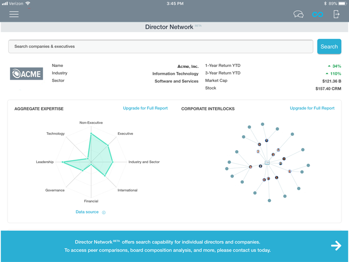 Expertise assessment – View departments of expertise for your board as well as competitors, letting you quickly identify opportunities at a glance.