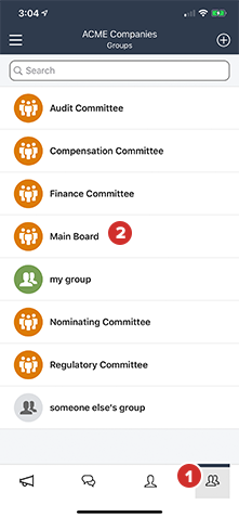 Seleccione el icono Grupos. Aparecerá una lista de sus grupos y comités.