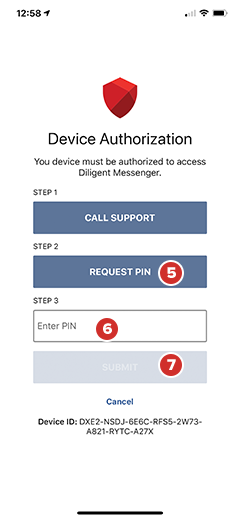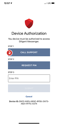 Connectez-vous à Diligent Messenger avec votre nom d’utilisateur et votre mot de passe. Un message d’Autorisation de l’appareil s’affiche dans une nouvelle fenêtre.