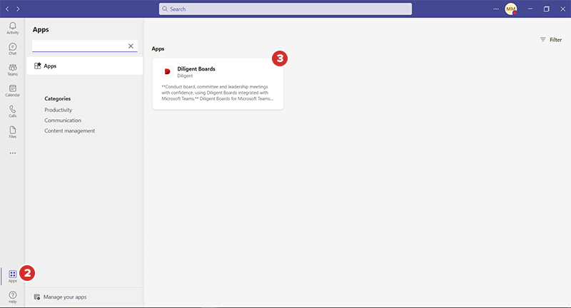Per aggiungere l'app, selezionare Diligent Boards dall'elenco delle applicazioni.