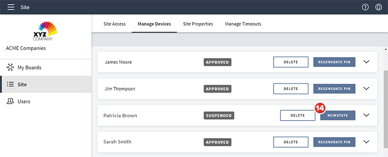 Mentre la sospensione di un dispositivo impedirà all'utente di accedere a qualsiasi sito Boards, solo i dispositivi che sono stati autorizzati in passato possono essere sospesi.