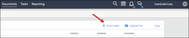 In the Documents tab you can create a folder to organize files and reference material in one space. Files can then be uploaded to the relevant folder.