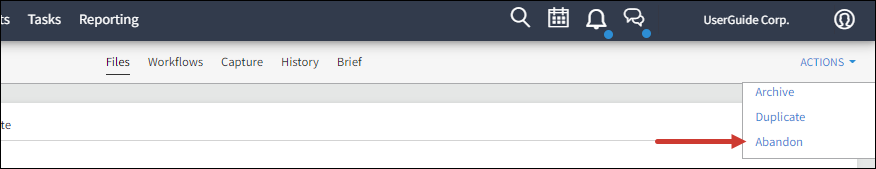 Abandon is how Diligent Workflow describe the act of deleting a job. After it has been abandoned the job is displayed in the Abandoned Jobs tab. You cannot restart an abandoned job, but you can Duplicate it to start a new Workflow.