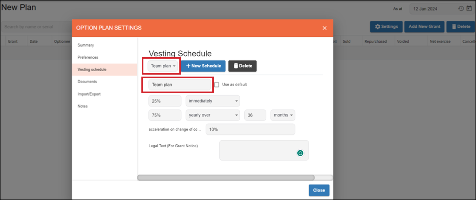 Select Close to save changes to your Option Plan Settings.