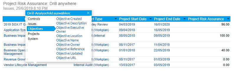 Drill in beliebiger Richtung. - Optional. Um menrere Berichte in einem Bericht anzuzeigen, wählen Sie