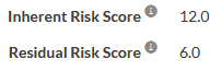 Ultimately, the testing results in a project can roll up into your organization's Inherent Risk and Residual Risk scores, which gives you a real-time picture of how much risk remains before and after controls have been put in place.