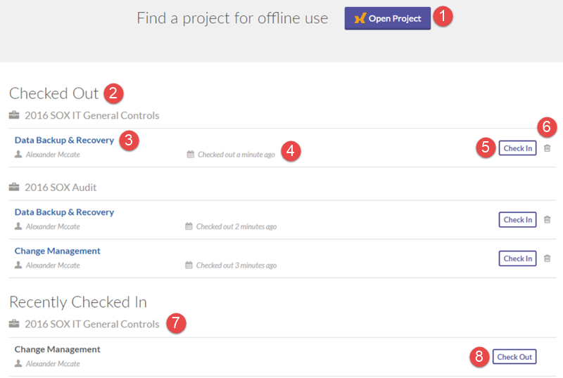 | 1 | Open Project | Access a project to work with offline. |