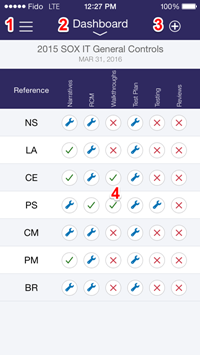 The figure below displays the components on the dashboard. The dashboard opens when a project is selected from the active projects list on the home page.