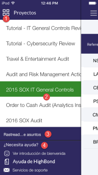| Conmutador de la página de inicio | Proporciona una lista de proyectos activos disponibles en la instancia de Diligent One y acceso al Rastreador de asuntos y a la documentación de respaldo |