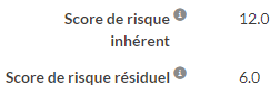 Résultat Le score de risque résiduel correspond à 50 % du score de risque résiduel inhérent. Si tous les contrôles avaient fonctionné correctement, le score de risque résiduel aurait été de 0,0 signifiant que les contrôles mis en place auraient permis de réduire le risque de 100%. Cependant, comme seuls deux contrôles sur trois ont abouti (ITC-01 et ITC-02, chacun avec une pondération de 25 %), les contrôles en place diminuent le risque de 50 %.