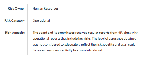 Innanzitutto, definisci una serie di campi di attributi del rischio che si applicheranno a ciascun rischio identificato. Quindi, caratterizzi e categorizzi ogni rischio utilizzando gli attributi di rischio definiti. Ad esempio, caratterizzi il rischio di perdita di talenti come segue: