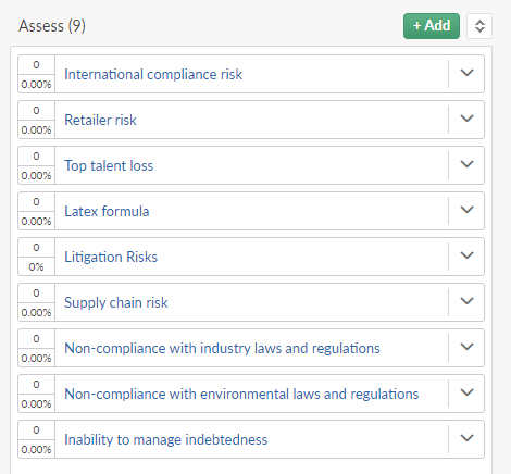 L'applicazione Strategia fornisce i rischi chiave più comuni, divulgati in un determinato settore, all'interno della sua Libreria del rischio. I rischi sono curati e normalizzati a partire dai rapporti S&P 500 10-k, Basilea e altro ancora. Ciascun rischio specifico del settore è corredato da una descrizione completa e può essere facilmente importato nel profilo del rischio dell'organizzazione.