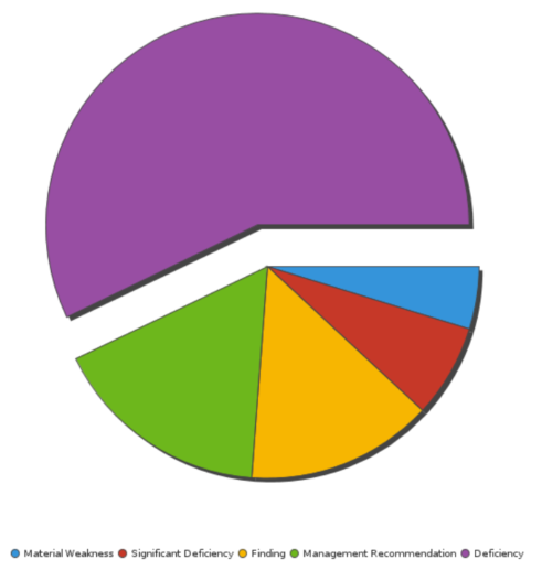 È necessario fornire una visualizzazione che mostri la percentuale delle issue aperte per tipo. Per visualizzare questi dati, scegliere un grafico a torta quindi utilizzare il colore per associare le diverse issue al significato: