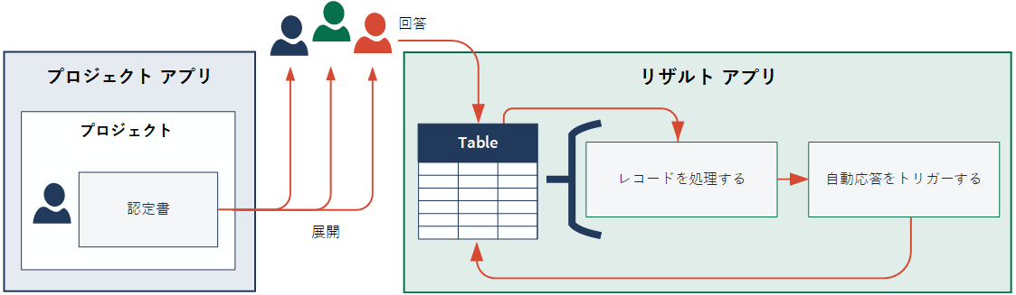 - アンケートを Projects から展開できます。回答は、リザルトのテーブルに格納されます。