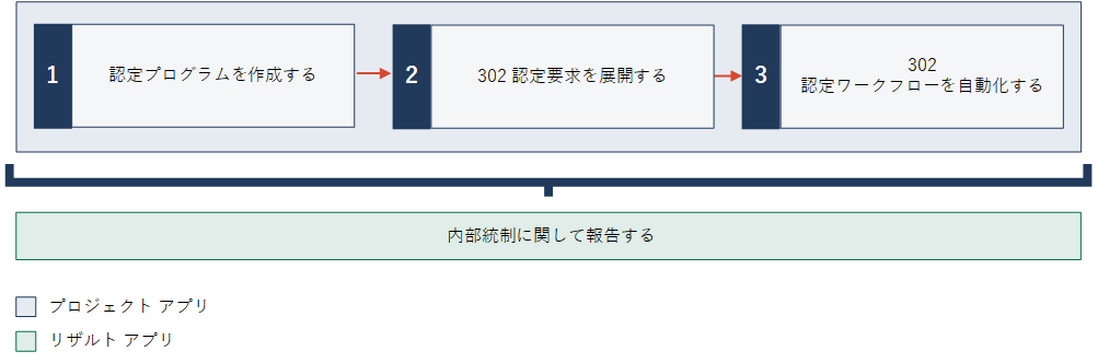 署名権限のある責任者が四半期報告の認定を徹底するのは、根気が要る作業です。このプロセスを合理化するには、組織は内部統制の利害関係者間で責任を公平に分配することを徹底する必要があります。この記事では、統制所有者による準認定の実施と、プロジェクト アプリとリザルト アプリを使った 302 認定要求の展開の方法について説明します。