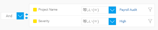 このフィルターは、重要度が高と評価され、給与監査に関連付けられた問題のみを含めるよう機能します。