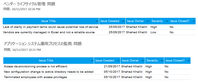 2 つのプロジェクトに関連する詳細な問題データを含むレポートが 2 つあります。