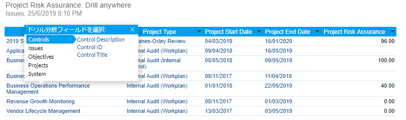 ドリルエニウェア]を選択します。 - 省略可能。単一のレポート内で複数のレポートを表示するには、[