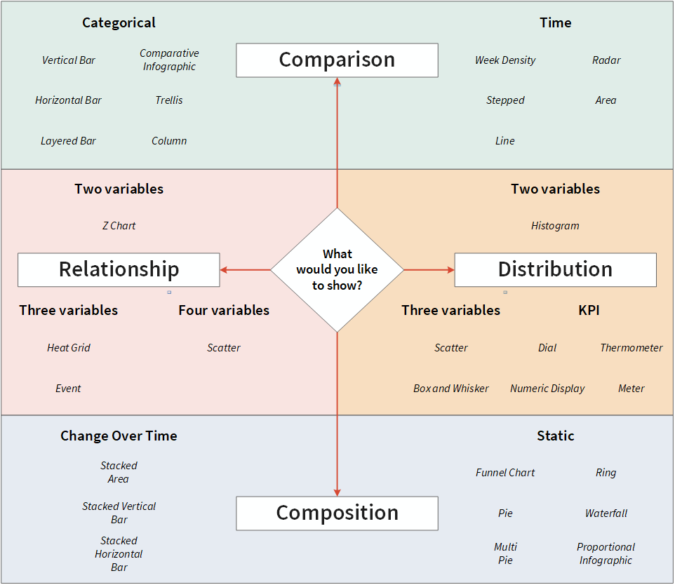 Meer te weten komen over de beschikbare grafiektypen, best practices in gegevensvisualisatie en hoe u de beste grafiek moet kiezen die bij uw behoeften past.