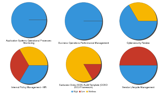 Uw organisatie volgt projectgegevens en dient de ernst van problemen per project vast te stellen. Als u een meervoudig taartdiagram gebruikt, kunt u problemen visualiseren en de beoordeling van de ernst per project duidelijk categoriseren: