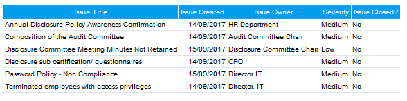 Depois de clicar, os dados dos problemas detalhados associados com o projeto Modelo de Auditoria de Sarbanes-Oxley (SOX) (Estrutura COSO 2013) são exibidos:
