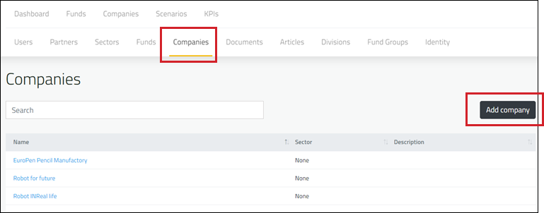 Select the Companies > Add company.