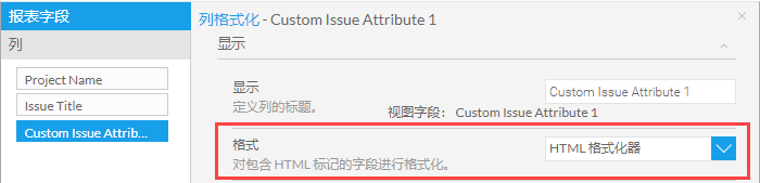 您的报告包含来自项目应用程序的一系列自定义问题属性。其中一些自定义问题属性是段落(富文本)字段。