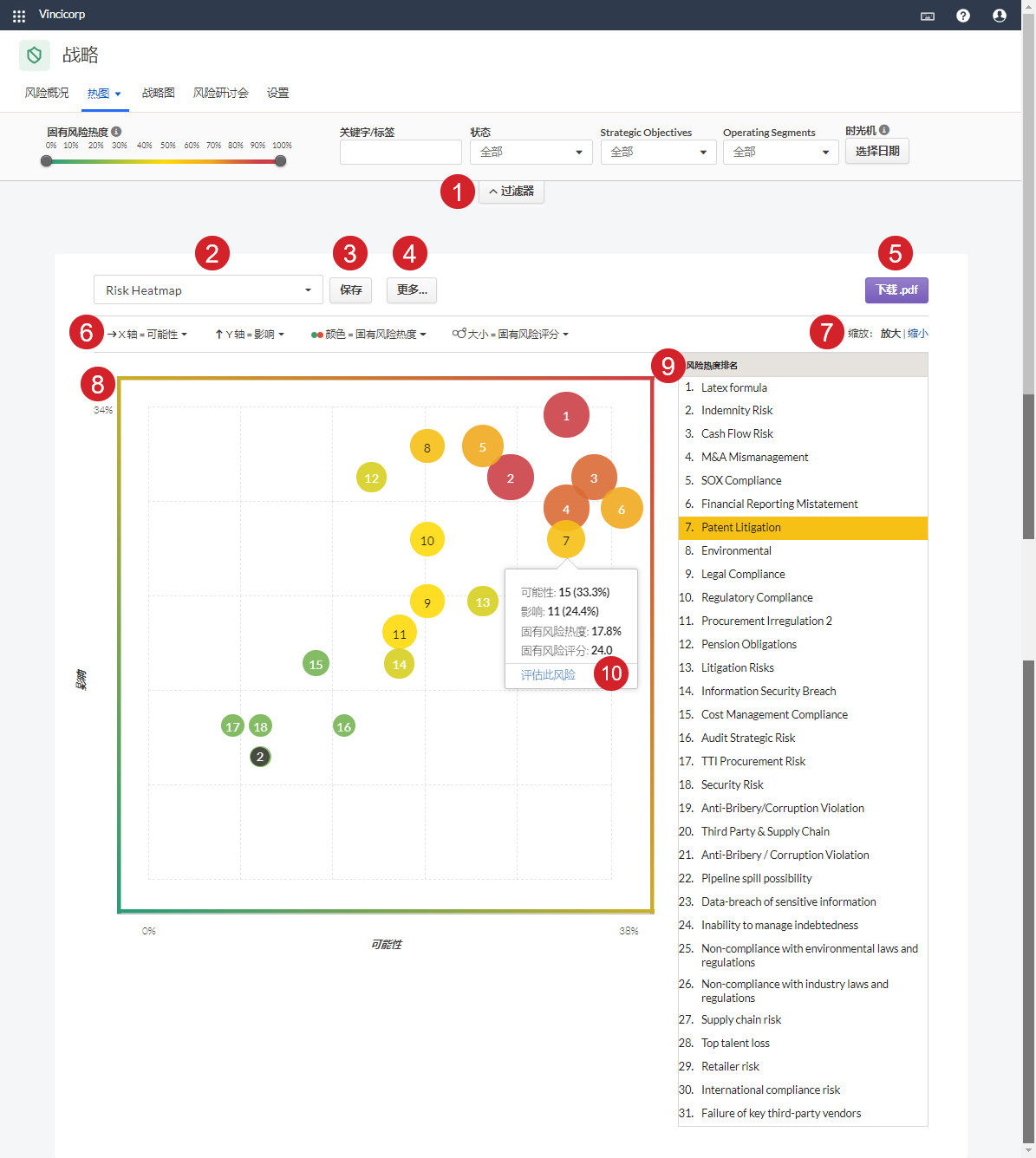 将战略热图导出至 .pdf 。已应用的过滤器会被保存并反映在该 PDF 中。 |